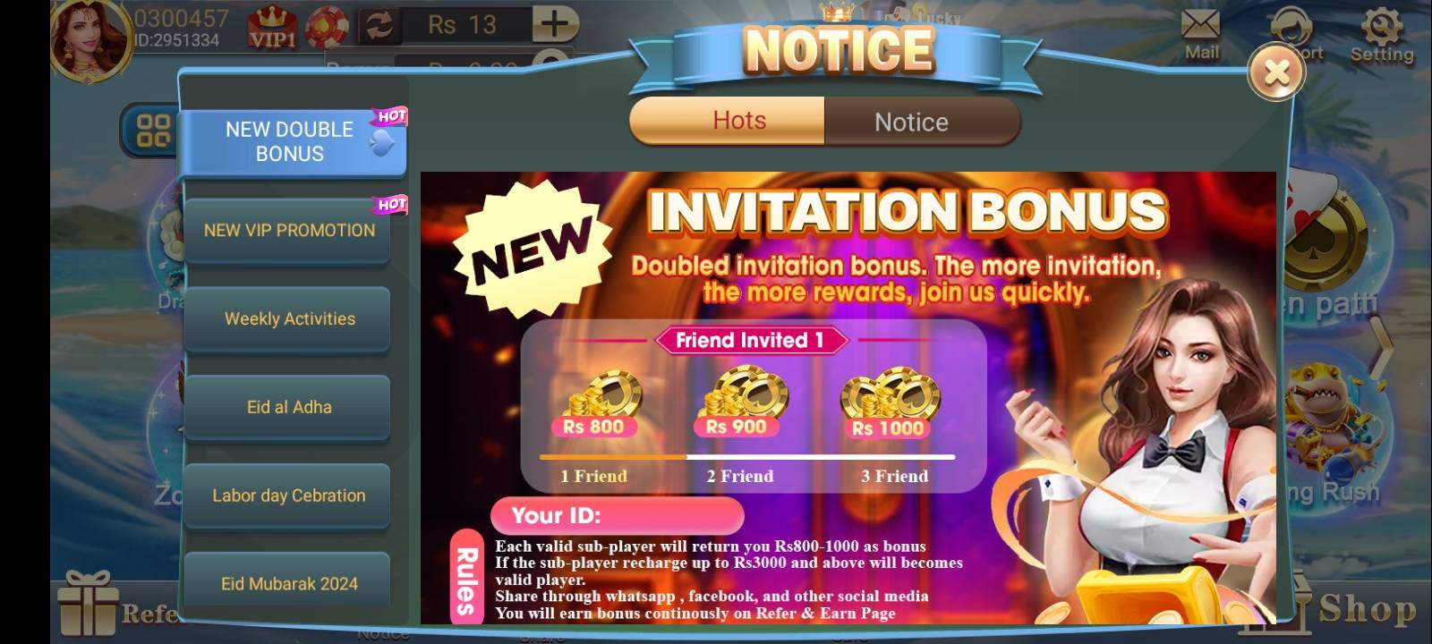 The app supports instant deposit and withdrawal through popular local payment methods such as JazzCash, EasyPaisa, and bank transfers. Users can easily fund their gaming wallets or cash out their winnings within minutes.
