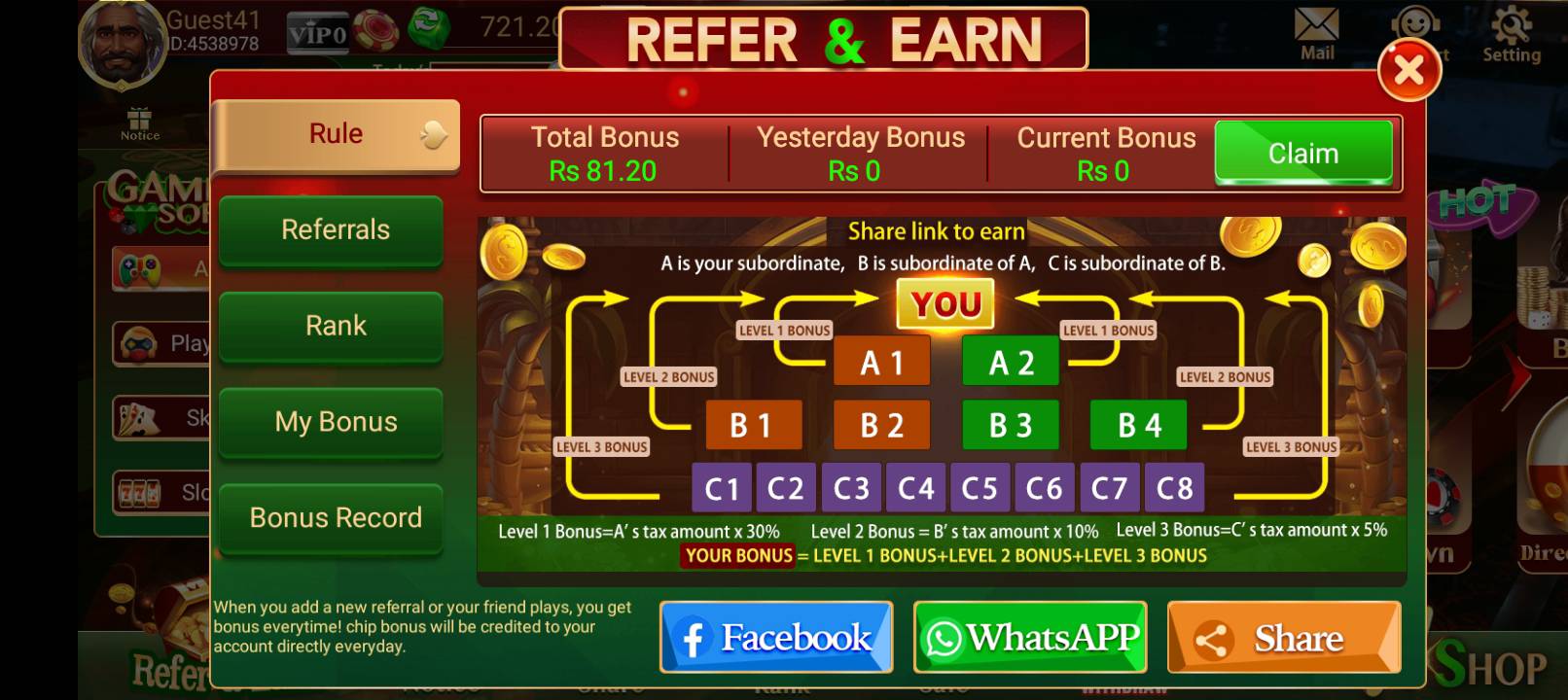 Ludo Tiger allows players to earn extra money by inviting friends. Every successful referral brings bonuses and commissions, creating an additional earning opportunity.