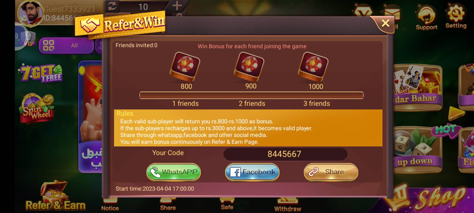 Invite friends and earn commission on their deposits and gameplay. The more players you refer, the more bonuses you collect.